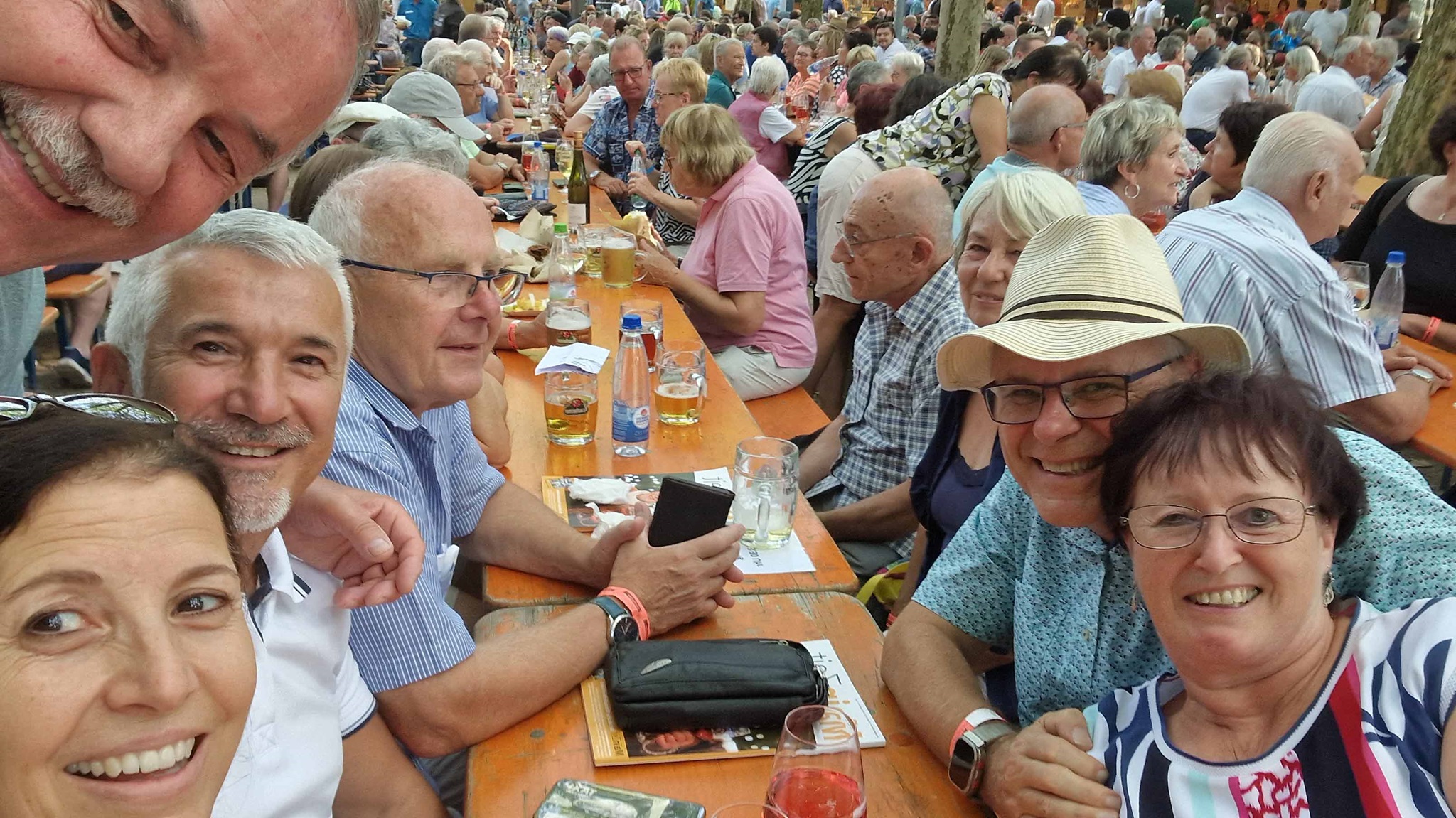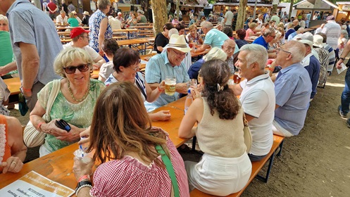 Eine Gruppe machte sich dann auf um eine schöne Schifffahrt auf dem Main zu genießen, die andere durften Volkach auf einer kleinen Stadttour kennenlernen. Anschließend traf man sich am Weinfest, wo man sich die guten Weine und Fränkischen Schmankerl, musikalisch von der Stadtkapelle aus Volkach begleitet, schmecken ließ. Am Abend heizte dann die Partyband "Frankenbengl" nochmal die Stimmung an. Bei herrlichstem Wetter verbrachten alle einen wunderschönen Tag und um Mitternacht kamen wir vollzählig wieder gut dahoam an. Alle waren sich einig: Das war ein wunderschöner gemeinsamer Ausflug und freuen sich schon auf weitere gemeinsame Unternehmungen.
